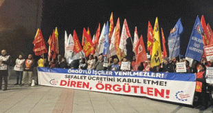 İşçi Emekçi Birliği, asgari ücret görüşmeleri adı altında yürütülen süreci teşhir etmek ve insanca yaşanacak bir ücret talebini yükseltmek için, 14 Aralık günü Bakırköy Özgürlük Meydanı’nda bir eylem yaptı. Saat 15’te başlayan eylem, “Asgari değil insanca yaşam”, “Kahrolsun ücretli kölelik düzeni”, “Kurtuluş yok tek başına, ya hep beraber ya hiç birimiz” sloganlarıyla başladı. Yapılan basın açıklamasında, asgari ücretin açlık sınırının …