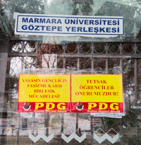 Proleter Devrimci Gençlik (PDG) “tutsak öğrencilere özgürlük” talebiyle Marmara Üniversitesi Göztepe Kampüsü ve çevresine afişler …