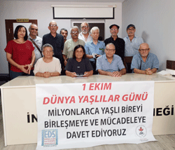1 Ekim Dünya Yaşlılar Günü nedeniyle Adana Emekliler Dayanışma Sendikası ve Adana İHD Yaşlılar Komisyonu, ortak basın toplantısı gerçekleştirdi. Basın toplantısı sonrasında yapılan söyleşide, yaşlı hakları konusunda daha kitlesel duyarlılık yaratma ve merkezi ve yerel yönetimlerden yaşlı hakları ile ilgili taleplerimizi karşılamasını isteme konusunda hemfikir olundu. Önümüzdeki yıllarda buluşma kararlılığı belirtilerek söyleşi bitirildi.