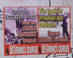 Suriye ve Ortadoğu’da yükselen emperyalist savaşa karşı, “Kahrolsun Emperyalist Savaş! Savaşa karşı BİRLEŞELİM, ÖRGÜTLENELİM, SAVAŞALIM!” ve “Tüm İşgalciler Ortadoğu’dan Defolsun! Yaşasın Halkların Kardeşliği!” yazılı, PDD imzalı stickerlar, emekçi semtlere ve merkezi yerlere yapıldı.