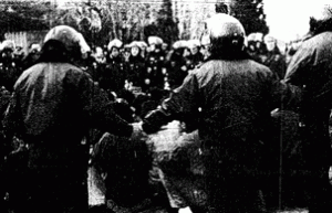 Dışarıdaki kitlenin öylesine büyük bir sahiplenişi vardı ki, polisler önce onları uzaklaştırmaya çalıştı. Ancak bu çok zordu. Karşılıklı sloganlar, ajitasyonlar, analarımızın haykırışları… “Çıkmayın çocuklar, size işkence yaparlar!”