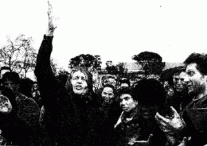 Bu arada rektörlük önünde toplanan büyük bir kalabalık, bizimle birlikte sloganlar atıyor, marşlar söylüyordu. Dışarıda toplanan kitle ile birlikte ortak attığımız sloganlar, birlikte söylediğimiz marşlar, coşkumuzu daha da büyütmüştü.