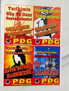Üniversite çevrelerine ve emekçi semtlere, “Tarihimiz güç ve onur kaynağımızdır! Gelenek sürüyor!”, “Köklerimiz toprakta tarihten geliyoruz! Geleceğe yürüyoruz!”, “Vardık, varız, varolacağız! Kavga bayrağı ellerimizde!”, “Tasfiyecilik yenilgiye Bolşevizm zafere götürür! Biz kazanacağız!” yazılı ve PDG imzalı pullamalar yapıldı.