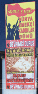 “Yaşasın 8 Mart Dünya Emekçi Kadınlar Günü”, “Taş yürek barikat! Yaşasın Gazi Direnişimiz!” yazılı ve PDD imzalı afiş ve stickerlar emekçi semtlere ve merkezi yerlere yapıldı.