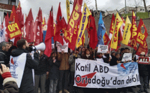 NATO ve Emperyalist Savaş Karşıtı Birlik (NESKB), 15 Mart günü İstanbul’da ABD Konsolosluğu önünde eylem yaptı. İstinye-Tersane durağında toplanan kitle, konsolosluğun önüne kadar sloganlarla yürüdü. Yürüyüş boyunca NATO ve emperyalist savaş karşıtı sloganlar coşkulu biçimde atıldı. “Kahrolsun ABD emperyalizmi”, “Emperyalistler işbirlikçiler yenilecek, direnen halklar kazanacak”, “İran halkı yalnız değildir”, “NATO’dan çıkılsın, üsler kapatılsın” en çok atılan sloganlar oldu.